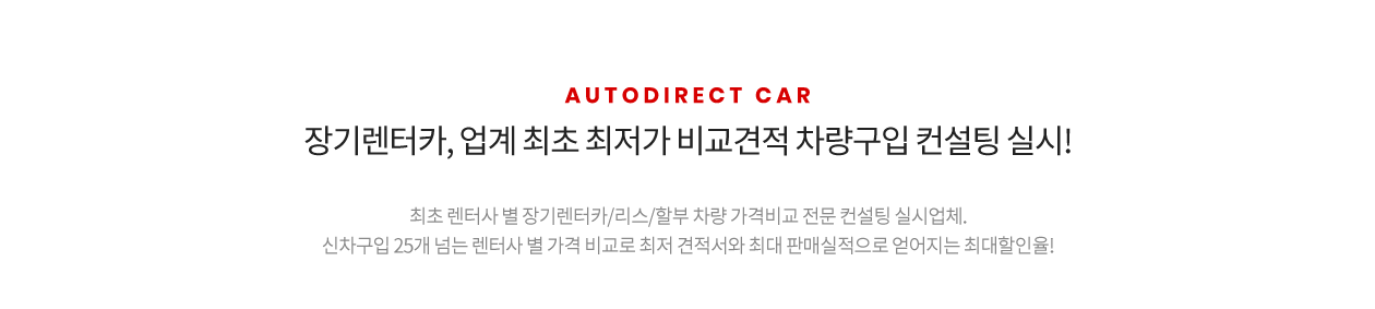 ※ 동의를 거부할 권리가 있으나, 위 사항에 동의하지 않을 경우 심사 불가로 인하여 장기렌터카 및 리스, 할부 이용이 불가합니다. 회사가 ㈜오토다이렉트카(https://autodirectcar.com)을 통하여 제공하는 서비스를 고객님이 이용하도록 하기 위해서 그 수집 및 이용이 필요한 최소한의 개인정보이므로 해당 항목에 동의를 해 주셔야 서비스 이용이 가능합니다.